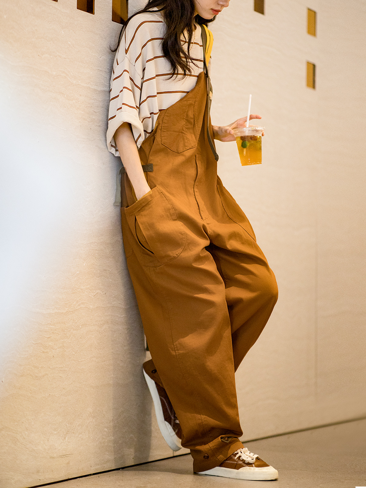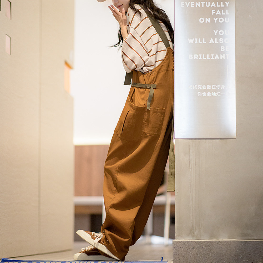 肩带调节吊带连体裤 背带裤 子女 复古vintage宽松廓形工装 马登美式