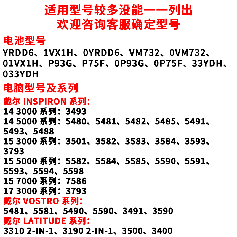 5584 5485 5488 5493 YRDD6电池 适用戴尔inspiron5480 5590 5482