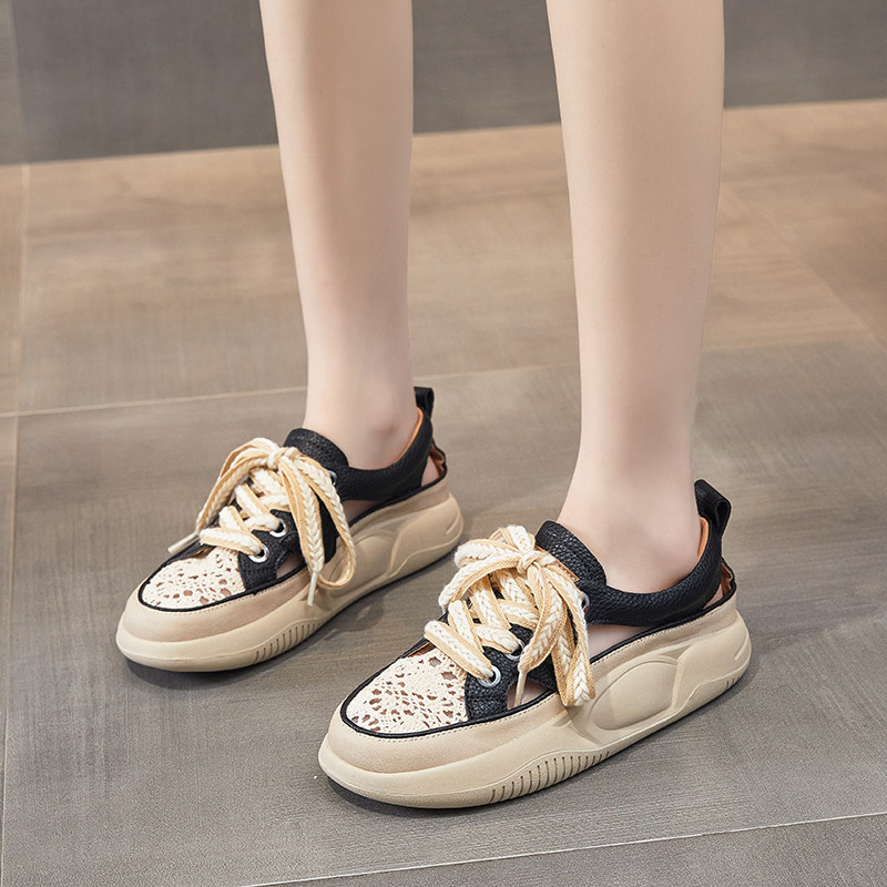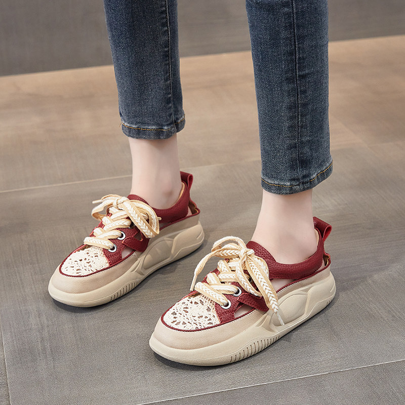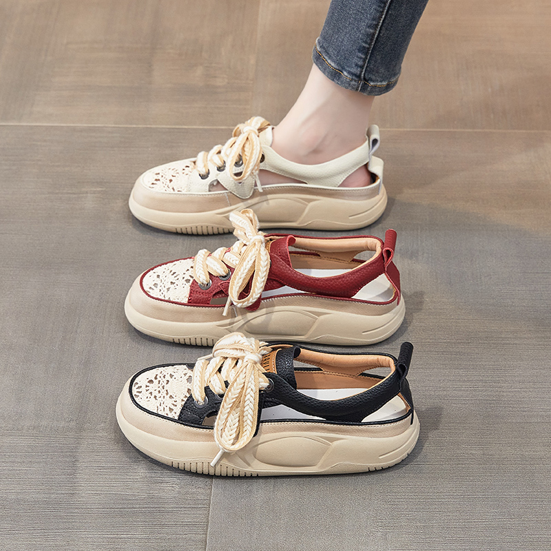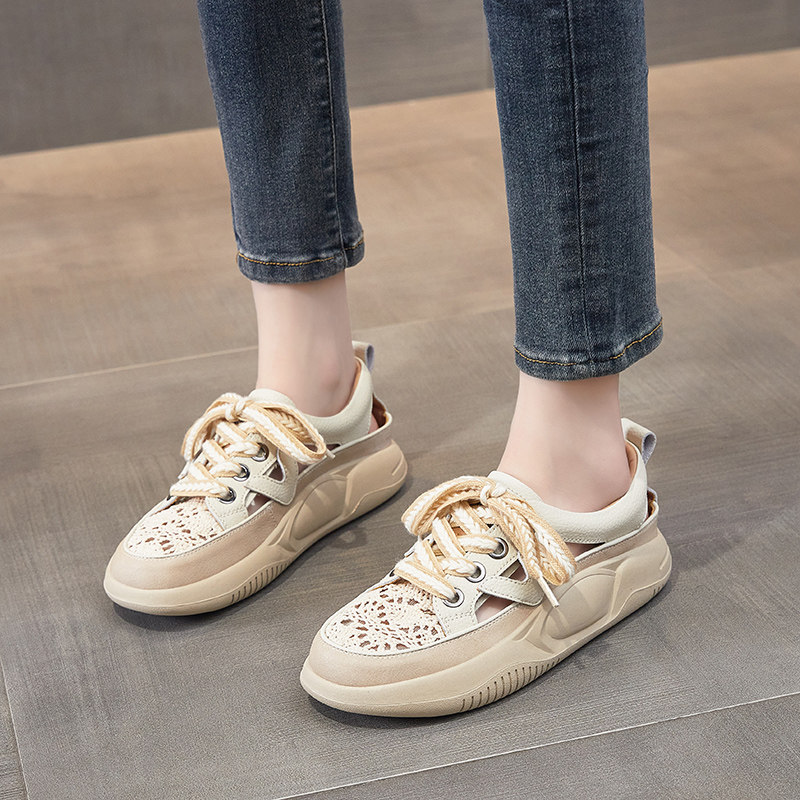 超火复古软底小白洞洞罗马鞋 新款 女2026夏季 包头镂空平底运动凉鞋