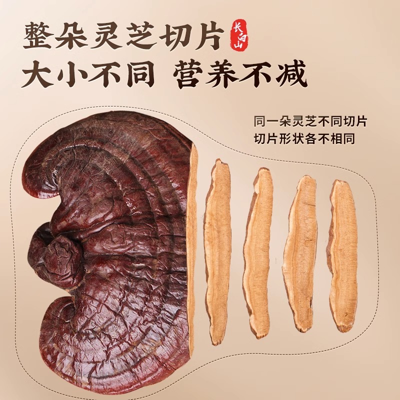 灵芝片500g长白山赤灵芝野生正品 中药材切片紫林芝粉泡酒灵芝茶