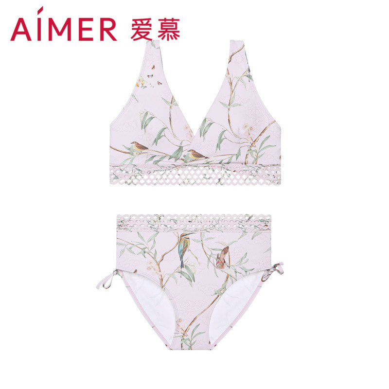 爱慕比基尼精致时尚 V领性感柔软亲肤透气休闲冲浪泳衣AM677471