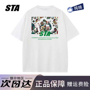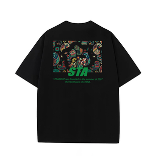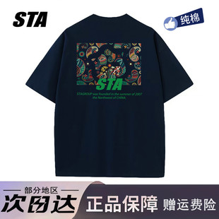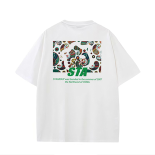 美式 夏季 潮牌街头重磅纯棉情侣T恤 男士 STA旗舰店腰果花设计短袖