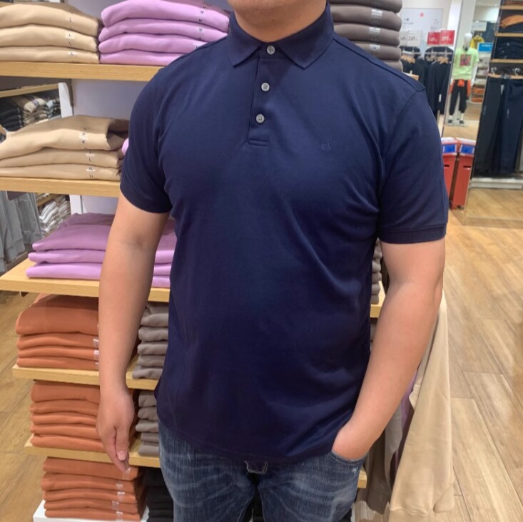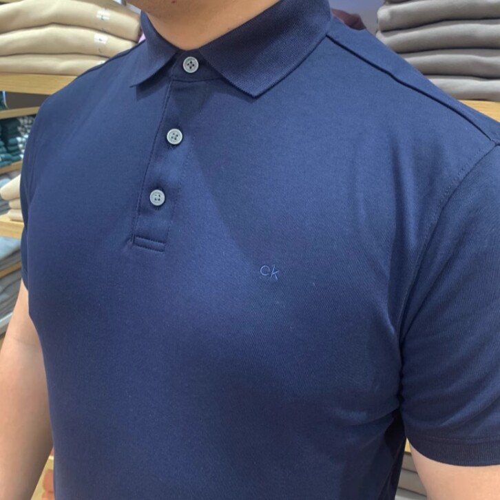Klein男士 Calvin 经典 三粒扣polo衫 T恤 XS码 纯色翻领丝光棉短袖