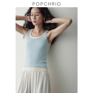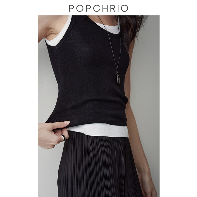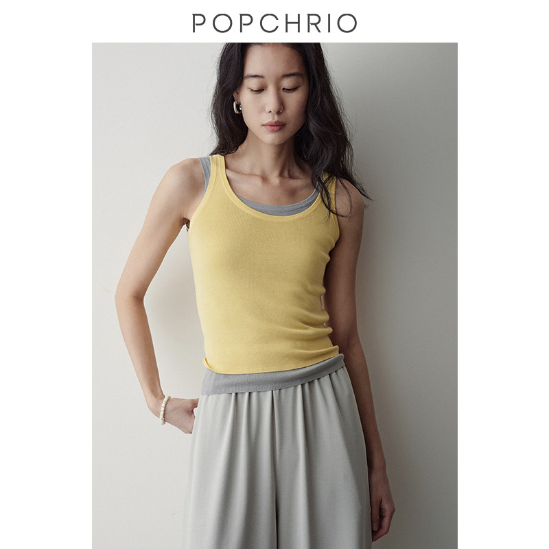 上衣女 设计感真两件U领撞色叠穿吊带小背心内搭修身 到手159元