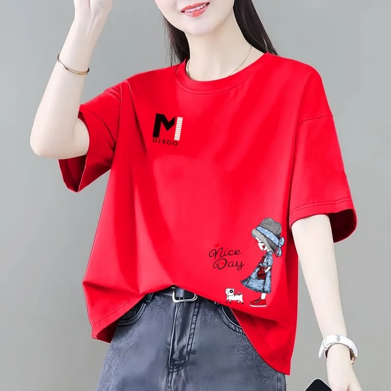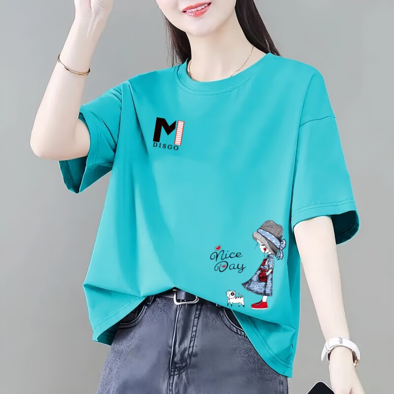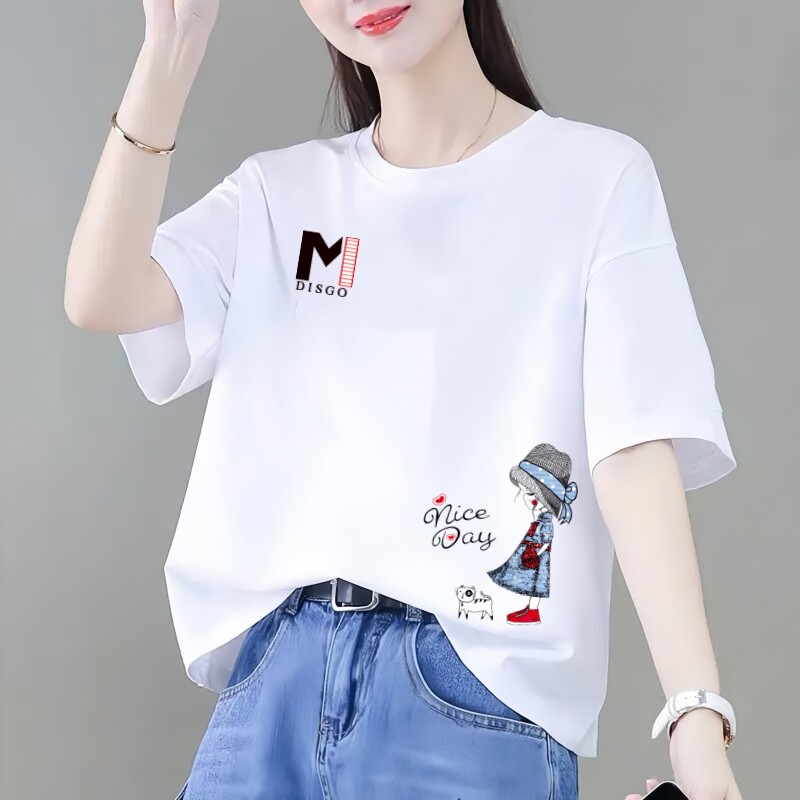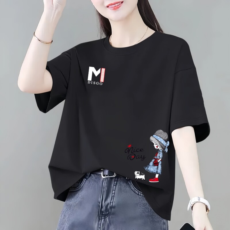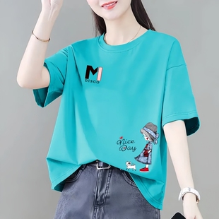 t恤女夏季 胖mm洋气减龄打底衫 新款 宽松大码 圆领上衣 韩版 纯棉短袖