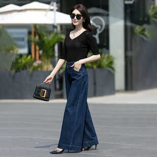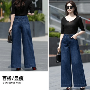 大码 宽松直筒显瘦九分裤 牛仔裤 高腰阔脚裤 子 2025新款 加绒女士冬季