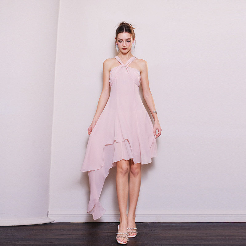 DIANA 挂脖不对称摆长裙摆自由浪漫轻盈连衣裙 VEVINA新款