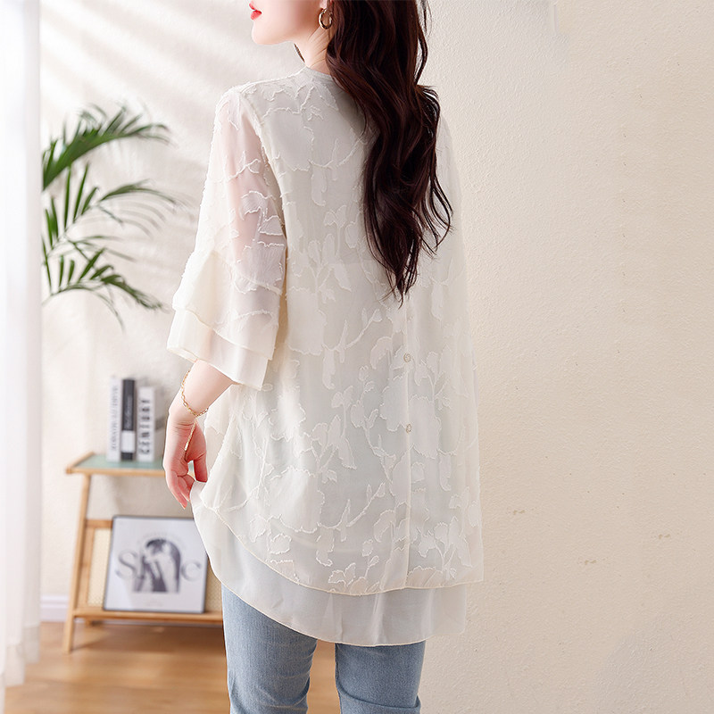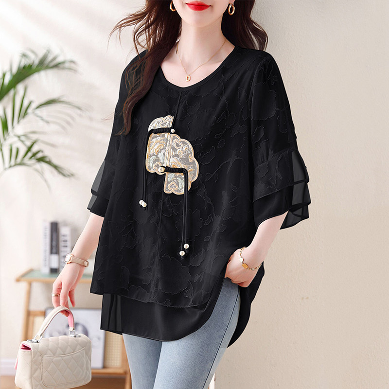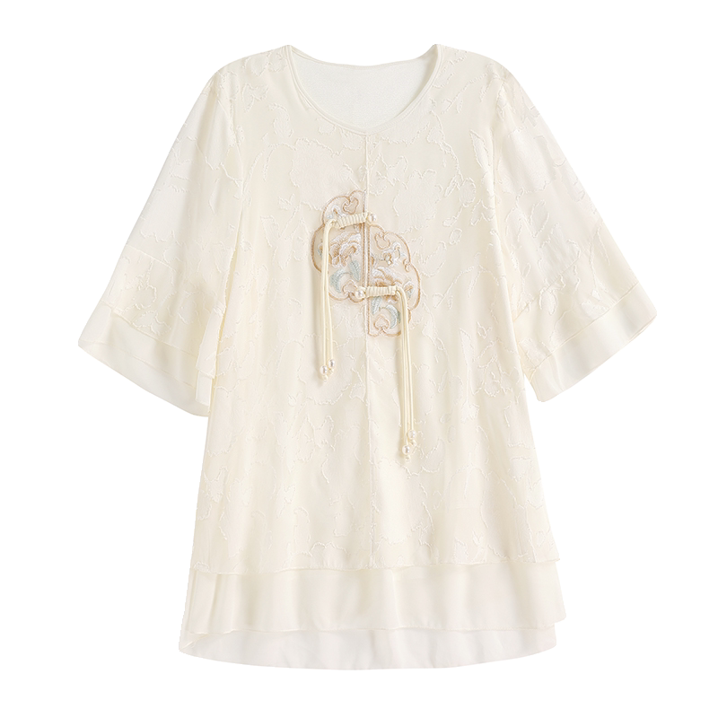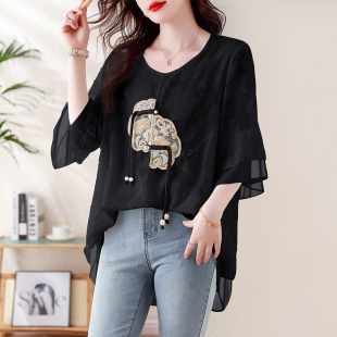 新款 女2024夏季 宽松欧货上衣 国风重工钉珠刺绣衬衫 九月陌墨新中式