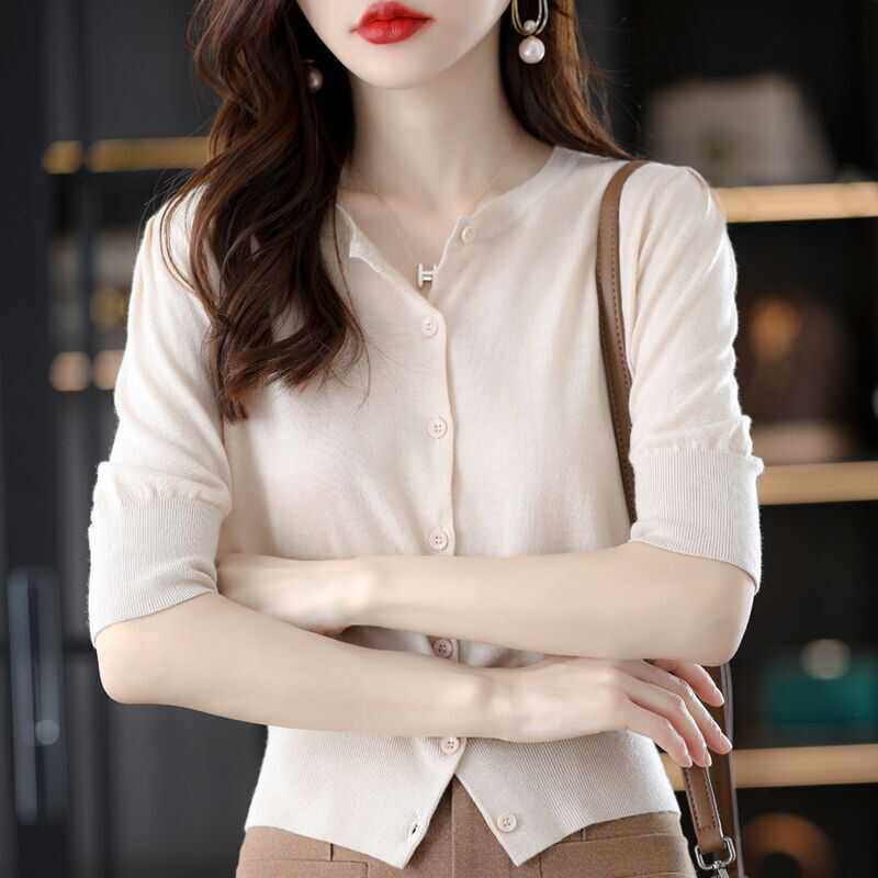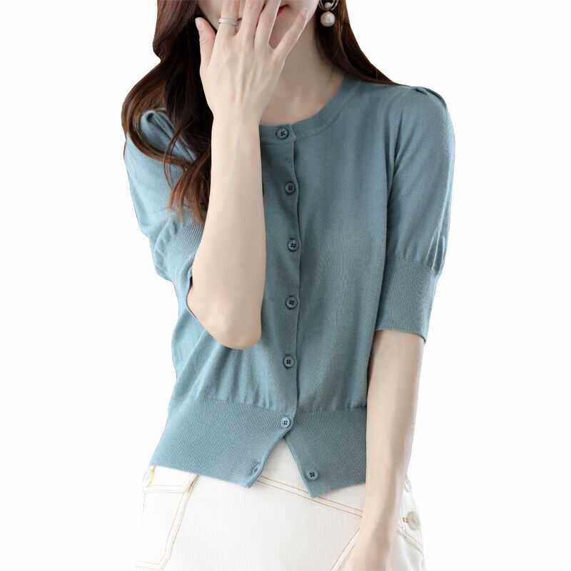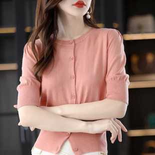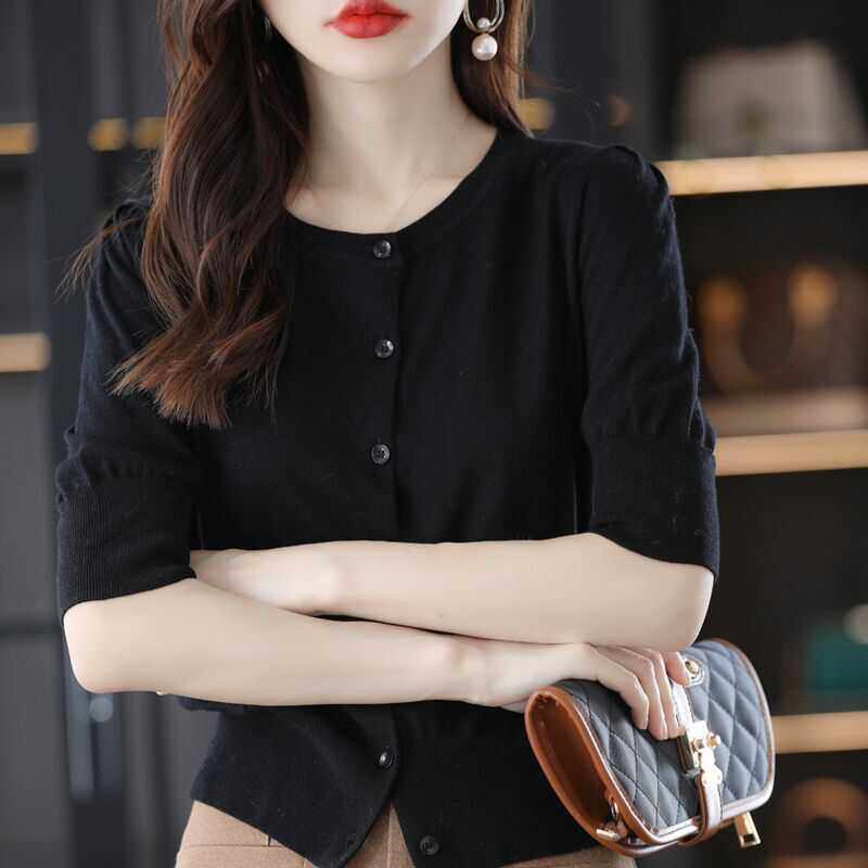 哥家新女装 女空调衫 2025夏圆领薄款 针织开衫 小香风上衣 短袖 正品