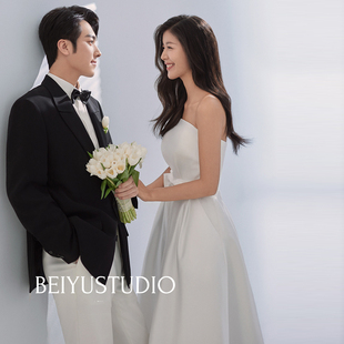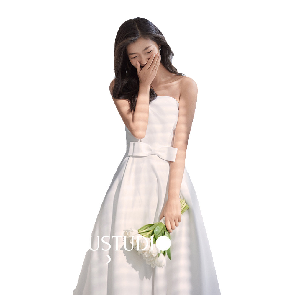抹胸缎面法式 简约超仙轻婚纱新娘绝美迎宾宴会出门纱高级感礼服