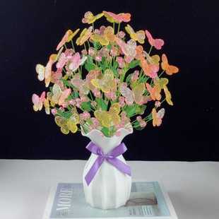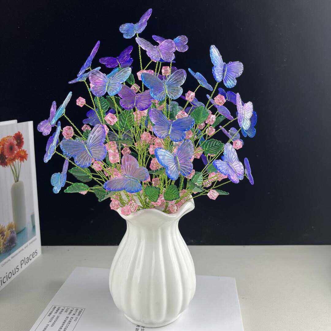 抖音同款 4cm透明彩色炫彩梦幻蝴蝶兰花束手工串珠diy头饰材料花