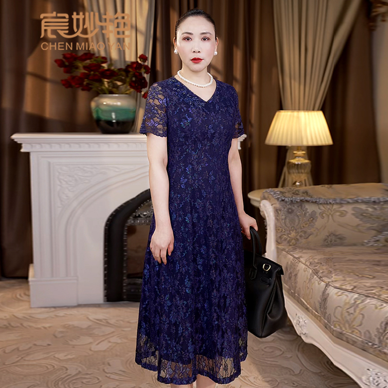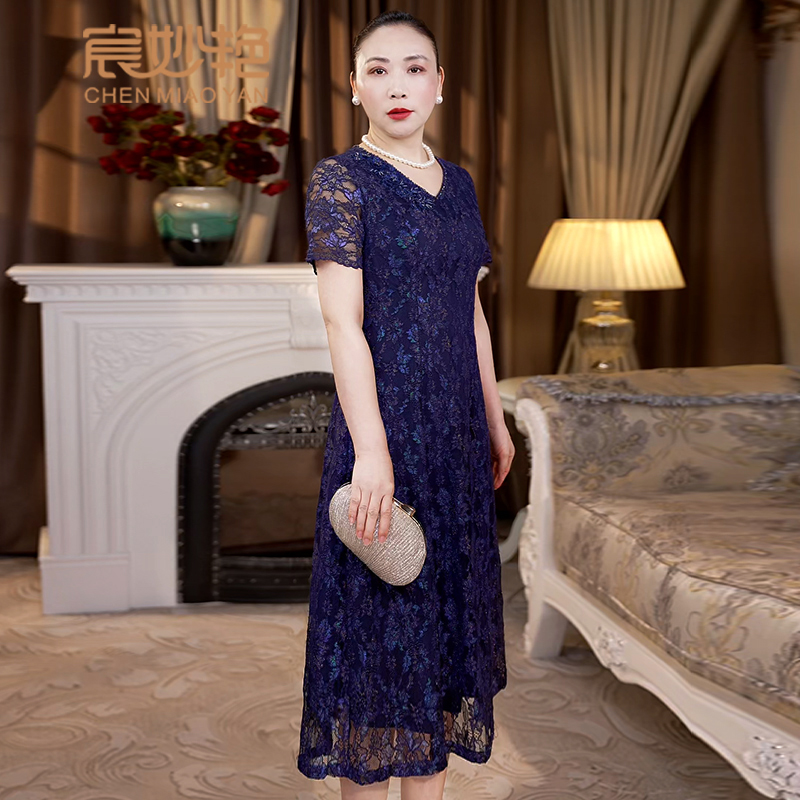 妈妈装 显瘦大码 A字裙 修身 宸妙艳高贵优雅气质蕾丝连衣裙中长款