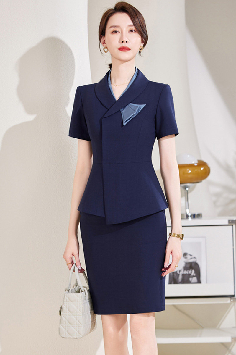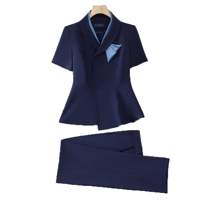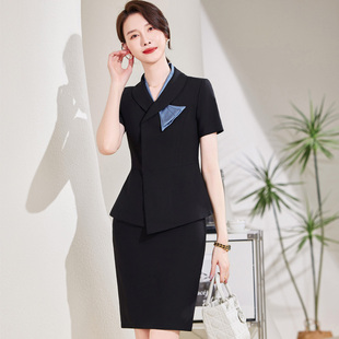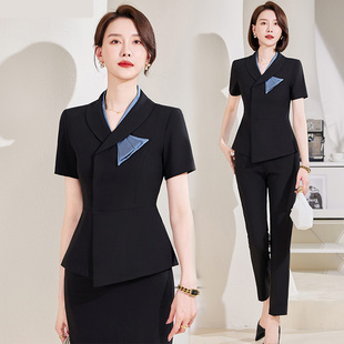 短袖 女夏薄款 空姐职业套裙韩范美容院珠宝金店工作服 套装 减龄西装