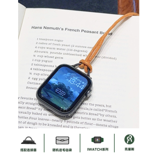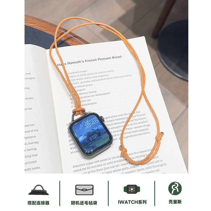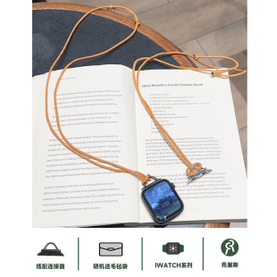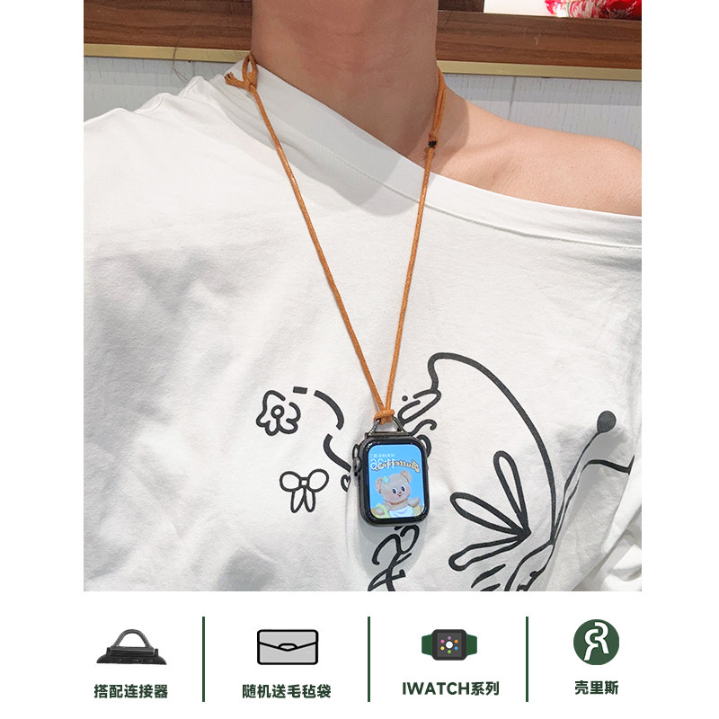 壳里斯iwatch棕色蜡绳项链挂脖表带S10防丢S6吊坠链条金属S8新款 s9适用SE2苹果Applewatch手表S7高级感Ultra2