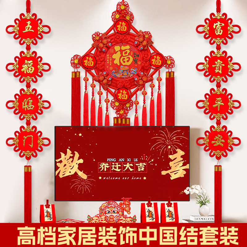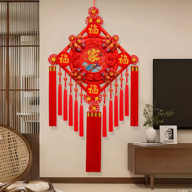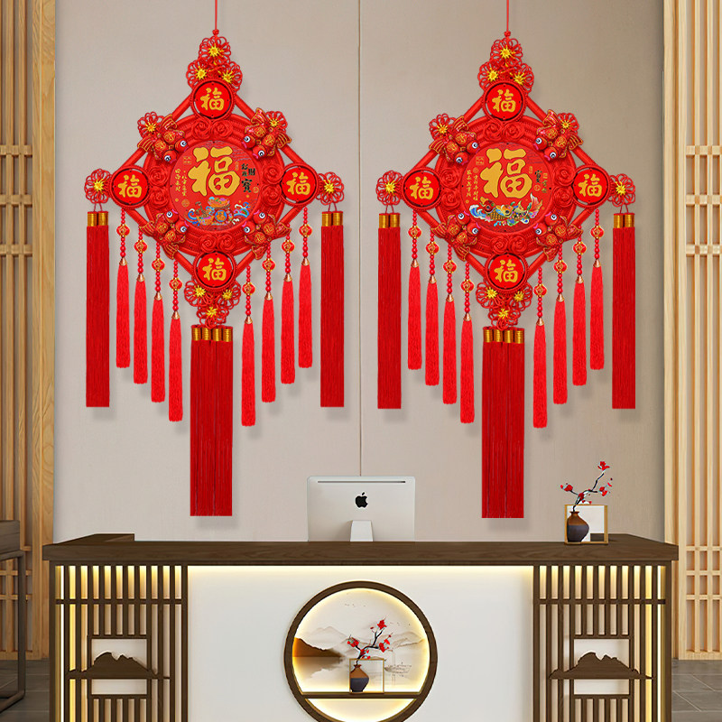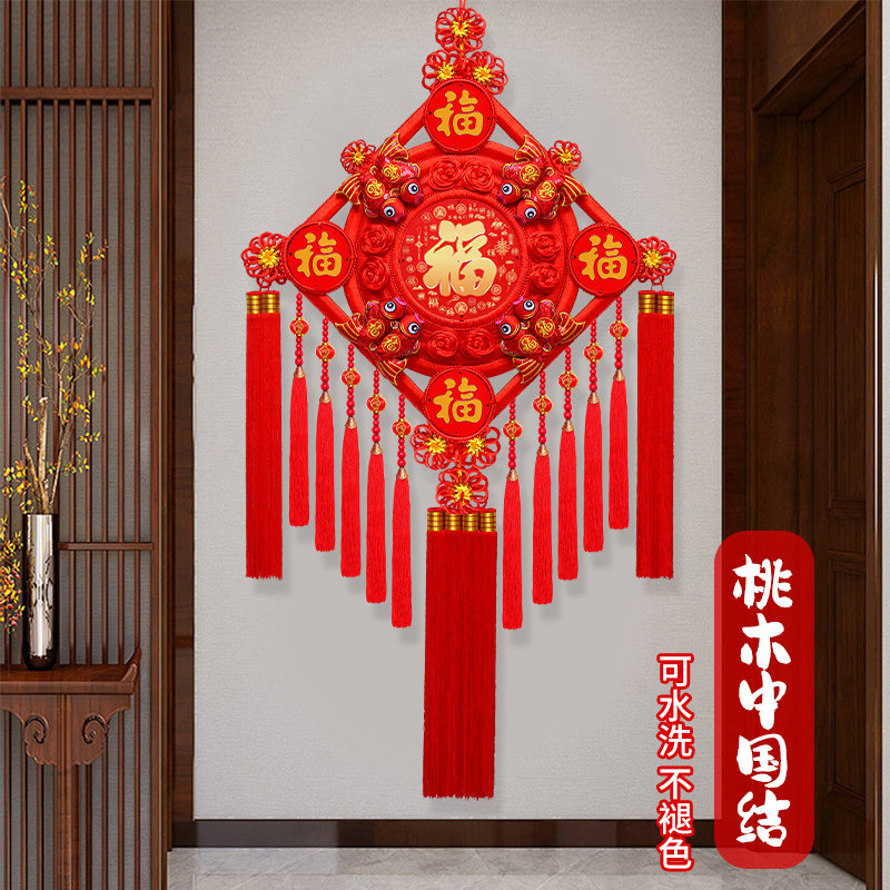 新款 饰大号挂饰 中国结福字挂件高档五福桃木客厅玄关背景墙镇宅装