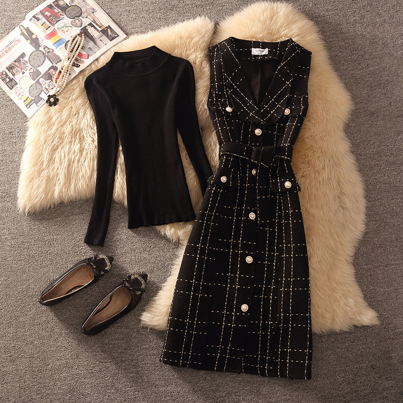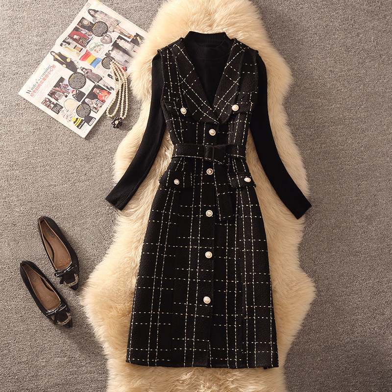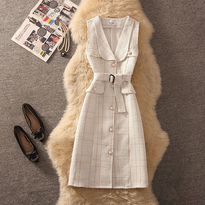 收腰显瘦马甲无袖 2026新款 打底背心裙 冬季 小香风复古金线格纹时尚