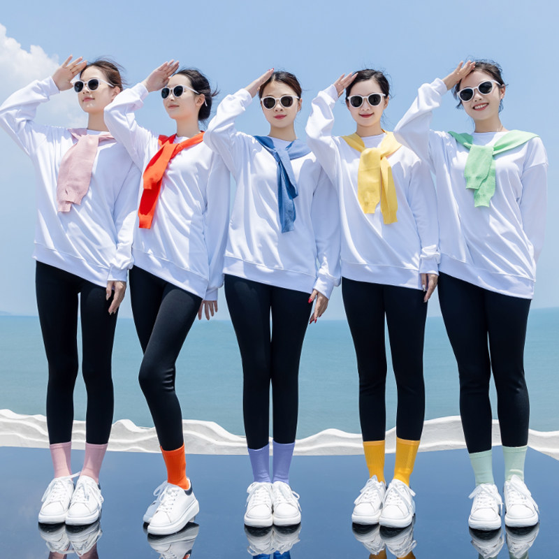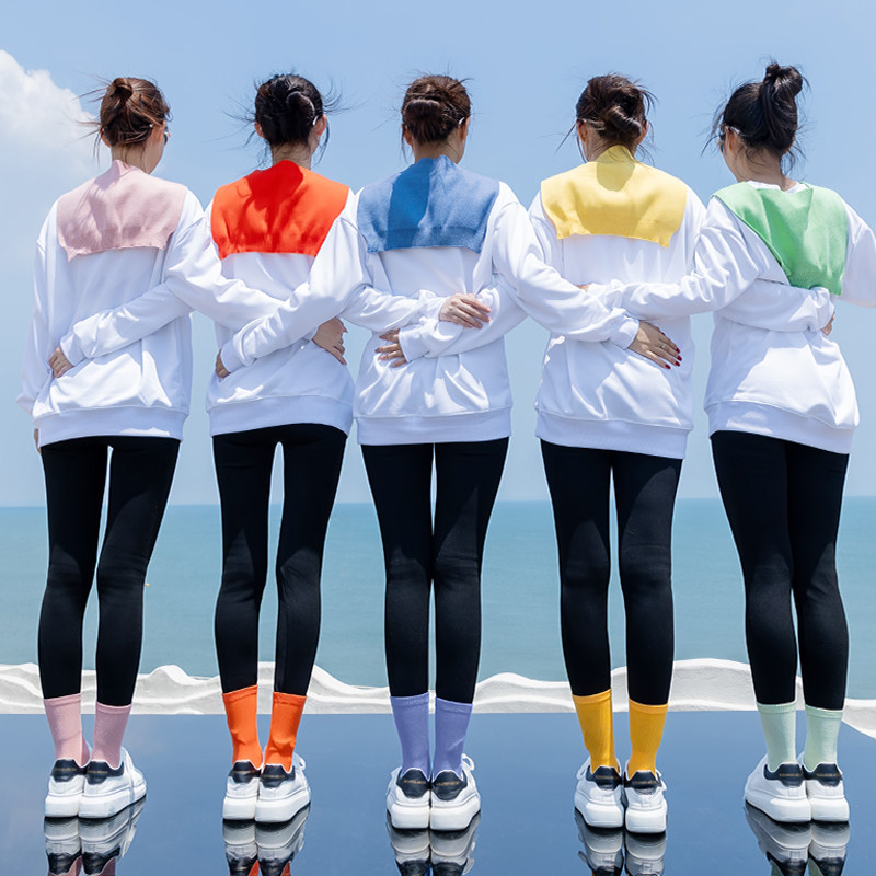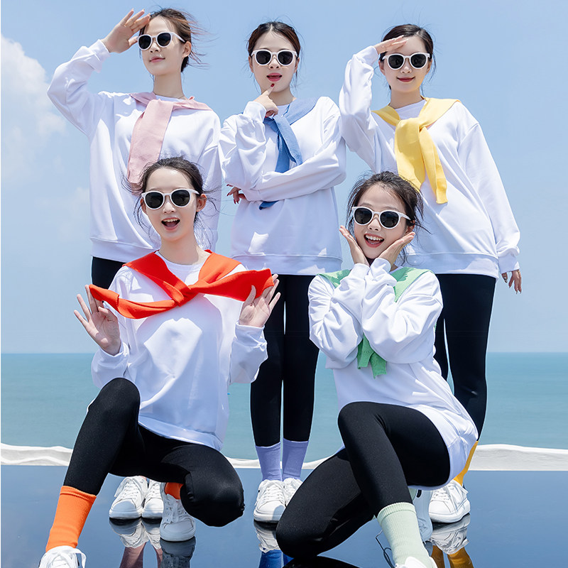 糖果色针织披肩圆领卫衣秋冬套装 姐妹聚会演出团建多人团体服表演