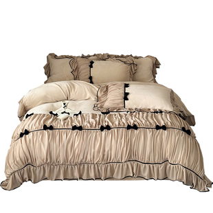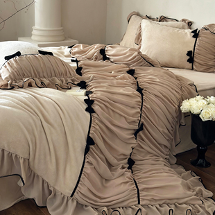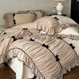 芙拉小姐︱法式 牛奶绒四件套保暖加厚复古被套床单 少女蝴蝶结冬季