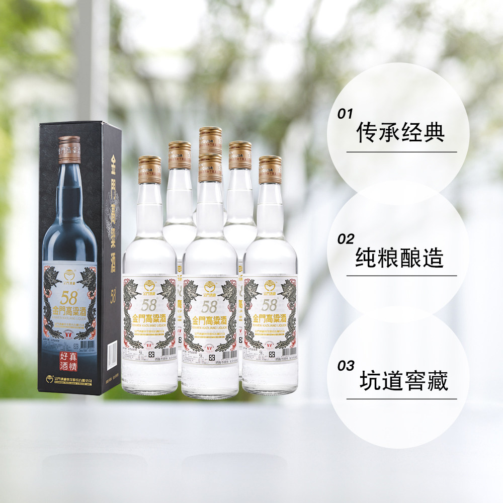 白金龙 600ml 6箱装 台版 金门高粱酒58度 纯粮酿造 原瓶 自营