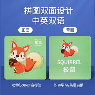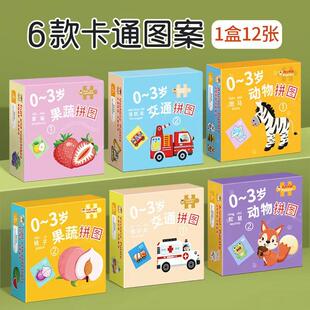 动物拼图儿童智力开发1到3岁男孩女孩幼儿园宝宝入门级平面认知卡