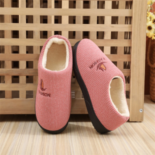 家用毛拖鞋 防滑厚底加绒保暖棉鞋 外穿包跟 居家老人棉拖鞋 冬季