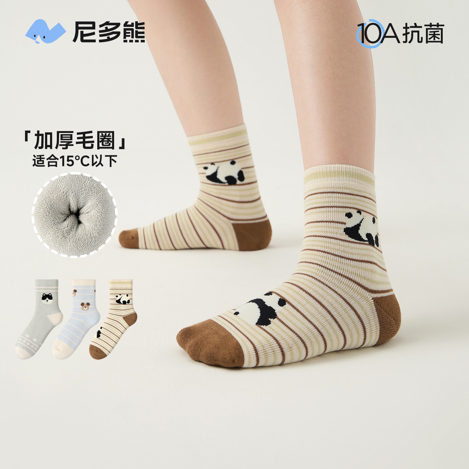 尼多熊儿童袜子冬季 加厚毛圈袜中大童棉袜保暖加绒男童袜抗菌