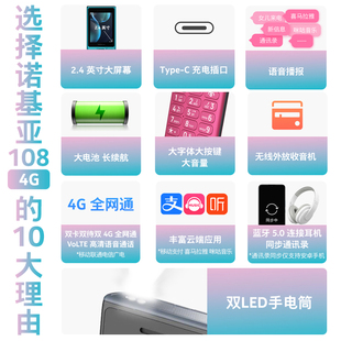 新品 旗舰店 官方旗舰店正品 4G语音播报老年手机老人机超长待机大字大声学生专用非智能2024新款 诺基亚108