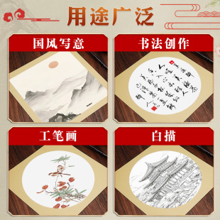 国画卡纸加厚宣纸镜片纸圆形半生半熟生宣熟宣小学生软笔毛笔字练习纸写生作品免装 裱空白33x33方形外方内圆