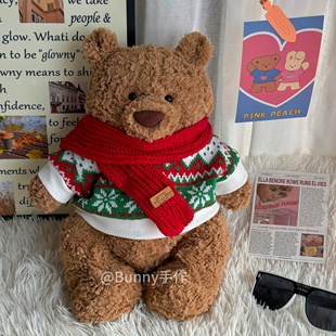 巴塞罗熊衣服秋冬新款 针织毛衣娃衣不含熊 圣诞衣服圣诞围巾秋冬装