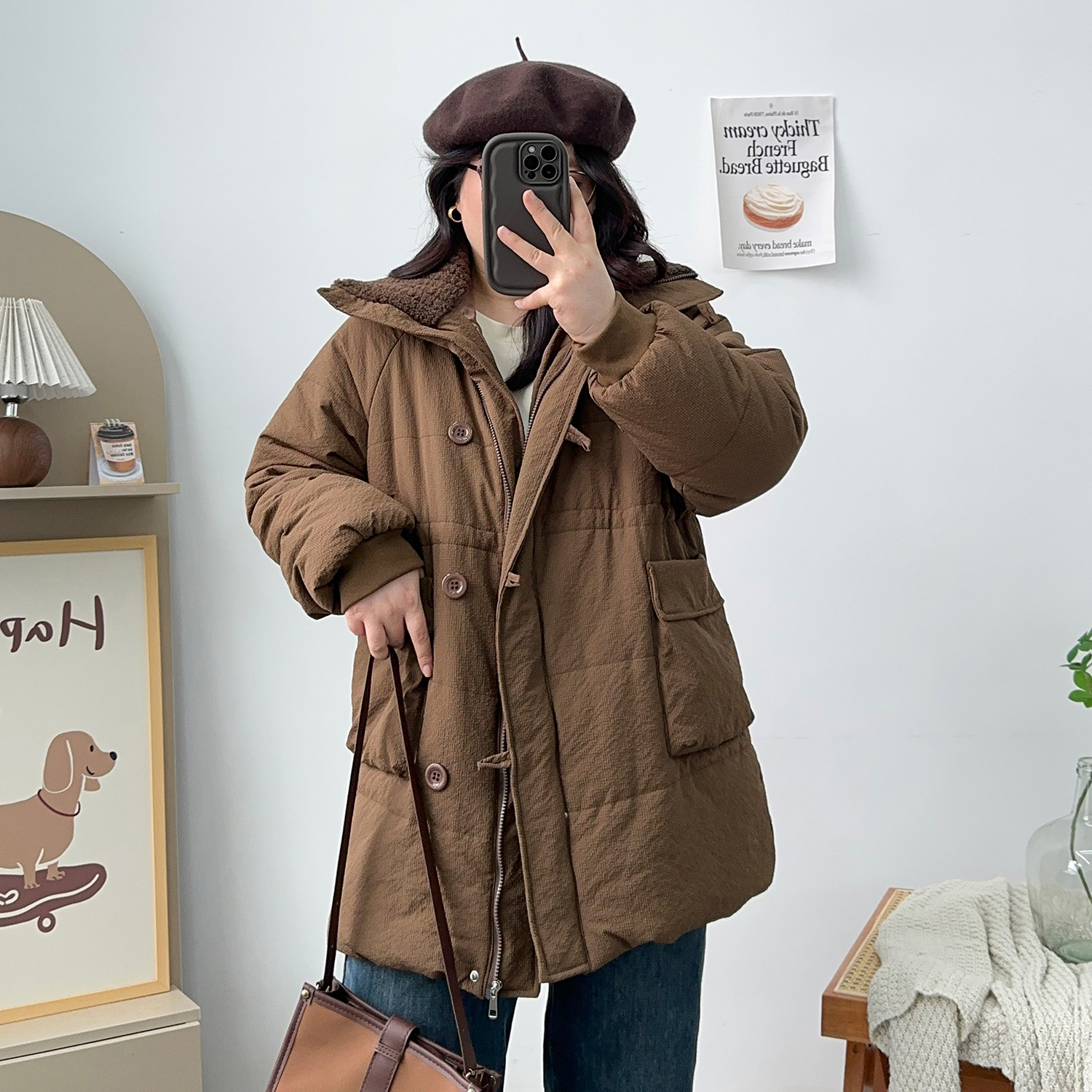 工装 复古夹棉加厚棉服女秋冬新款 派克服外套潮 胖mm美式 300斤大码