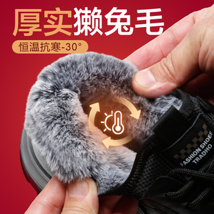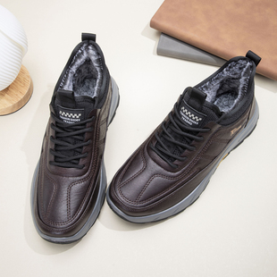 棉鞋 中老年保暖爸爸鞋 冬季 羊毛真皮高帮加绒皮鞋 子 男鞋 红蜻蜓男士