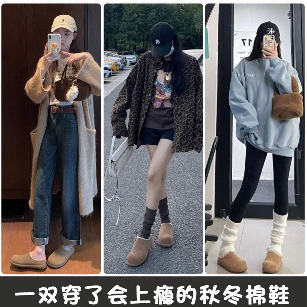 穆勒一脚蹬懒人棉拖鞋 包头厚底增高勃肯鞋 半拖女秋冬外穿2025新款