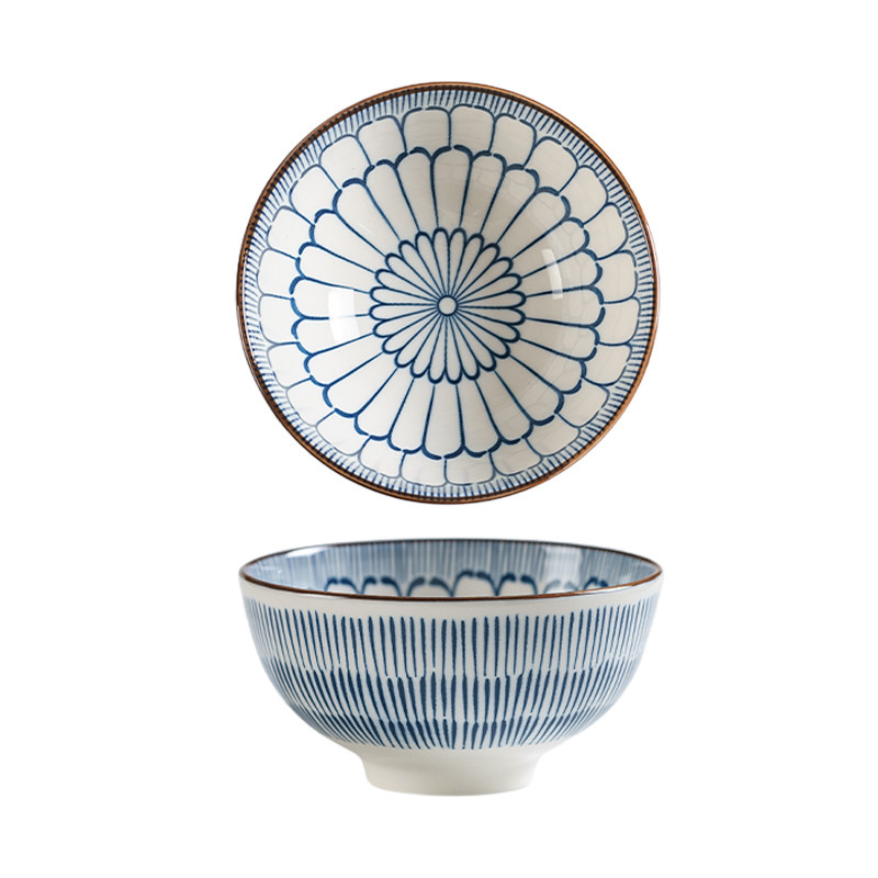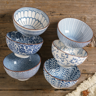 日式 米饭碗釉下彩陶瓷4.5英寸吃饭碗家用小碗复古餐具高脚碗饭碗