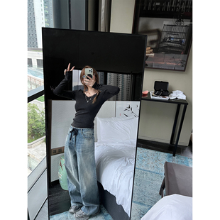 长袖 Xinlei 显瘦水洗做旧蕾丝打底衫 失序浪漫 T恤女秋冬上衣 Lin