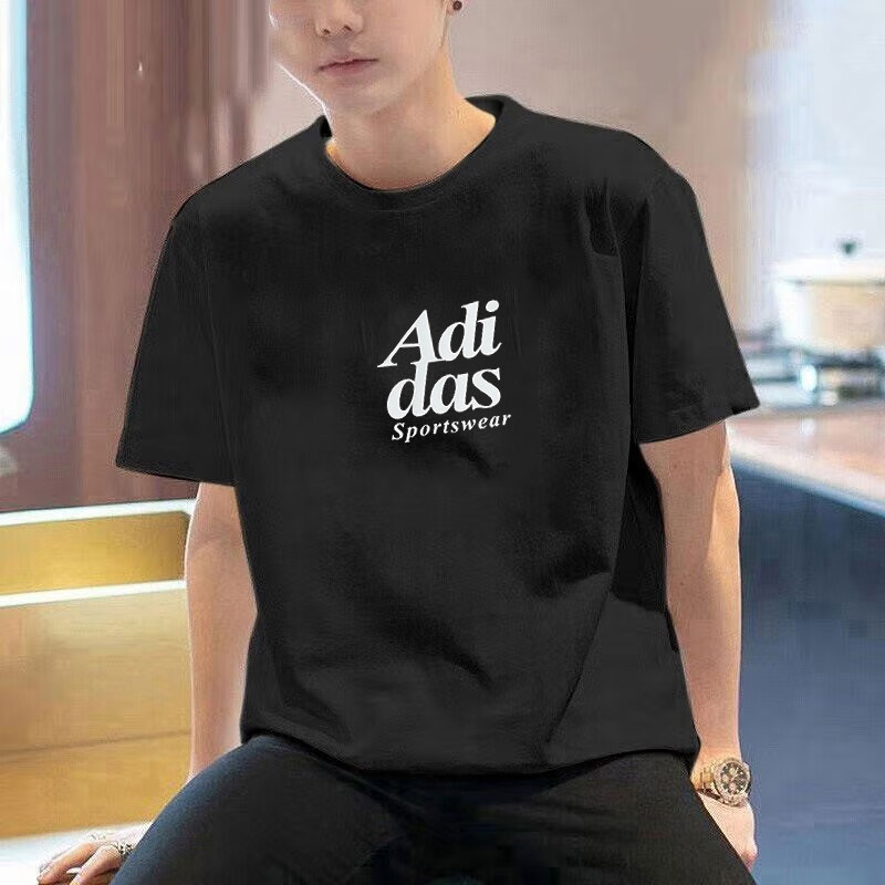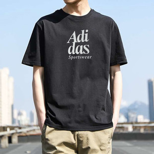 字母半袖 阿迪达斯纯棉短袖 新款 夏季 圆领运动复古透气简约T恤 男装