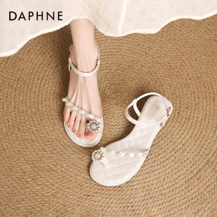 女2026新款 气质沙滩鞋 夏季 珍珠法式 女 夹趾凉拖鞋 达芙妮一字带凉鞋