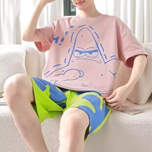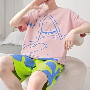 女卡通学生情侣可爱家居服可外穿套装 派大星睡衣男款 短裤 短袖 夏季