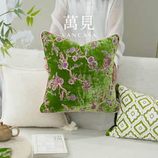 靠枕套沙发客厅靠垫高级 中国风抱枕绿色中式 VANCASA芳蕊春晖 法式