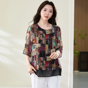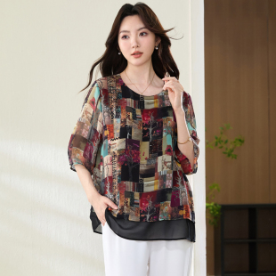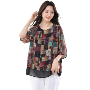 雪纺上衣胖妹妹遮肚显瘦短袖 特大码 洋气时尚 200斤胖mm夏装 T恤 女装