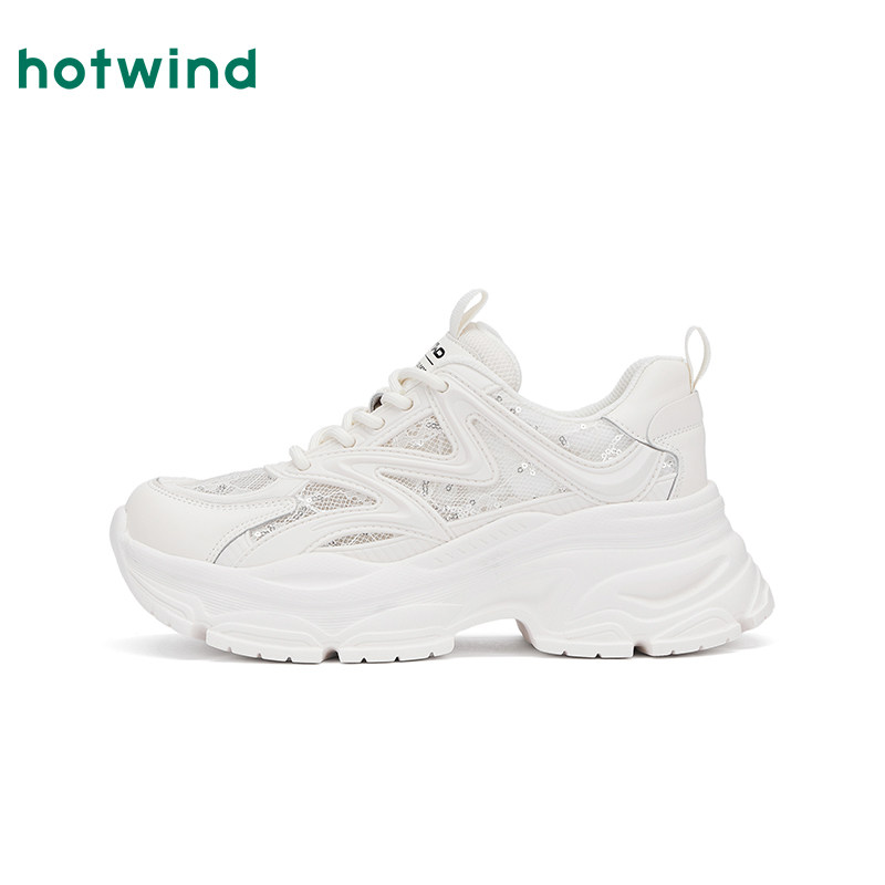 新款 2025年春季 女士时尚 休闲鞋 热风网面老爹鞋 纯色百搭厚底鞋 女鞋