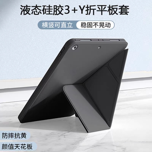 适用iPad5保护套iPad第五代Y折硅胶9.7英寸2017超薄全包防摔A1823液态纯色A1822横竖支撑软壳新款 平板支架