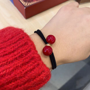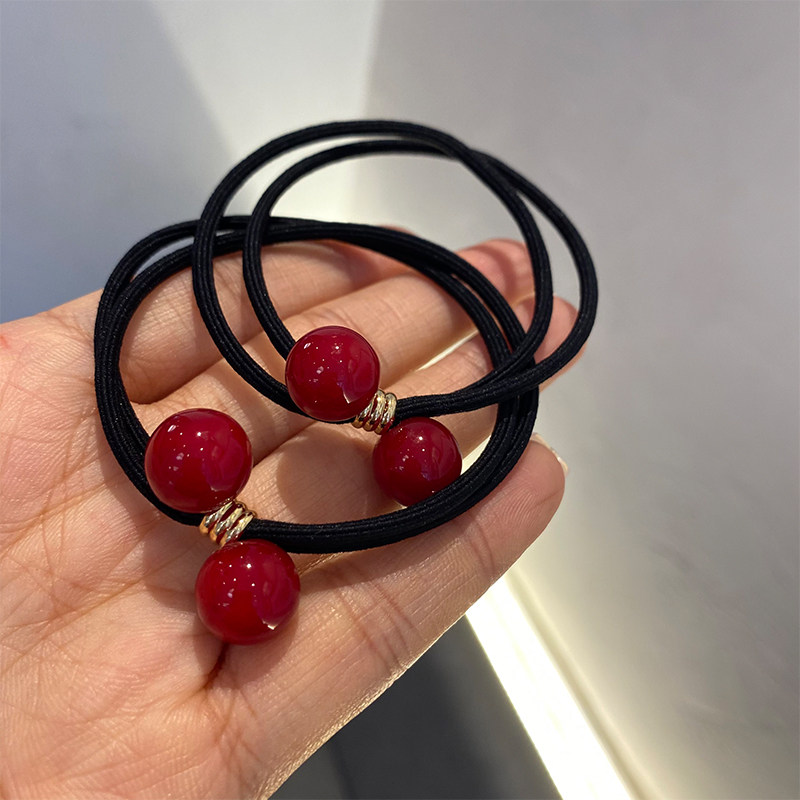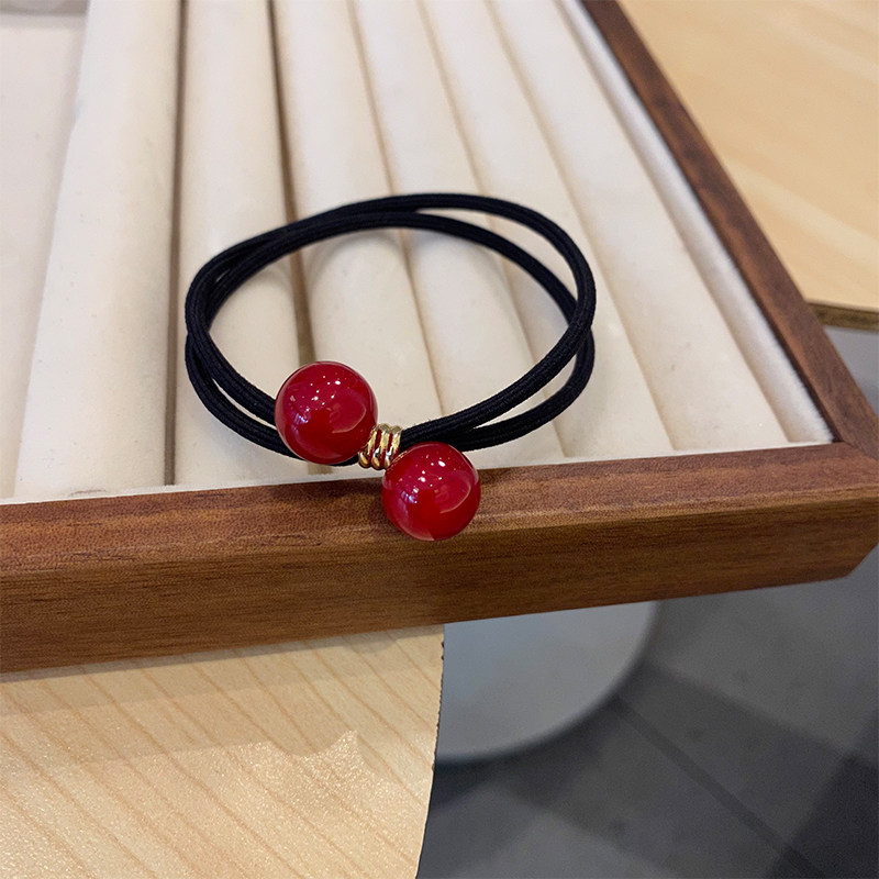 喜庆樱桃红珠子加粗发绳高弹耐用头绳扎马尾丸子头清新高弹橡皮筋