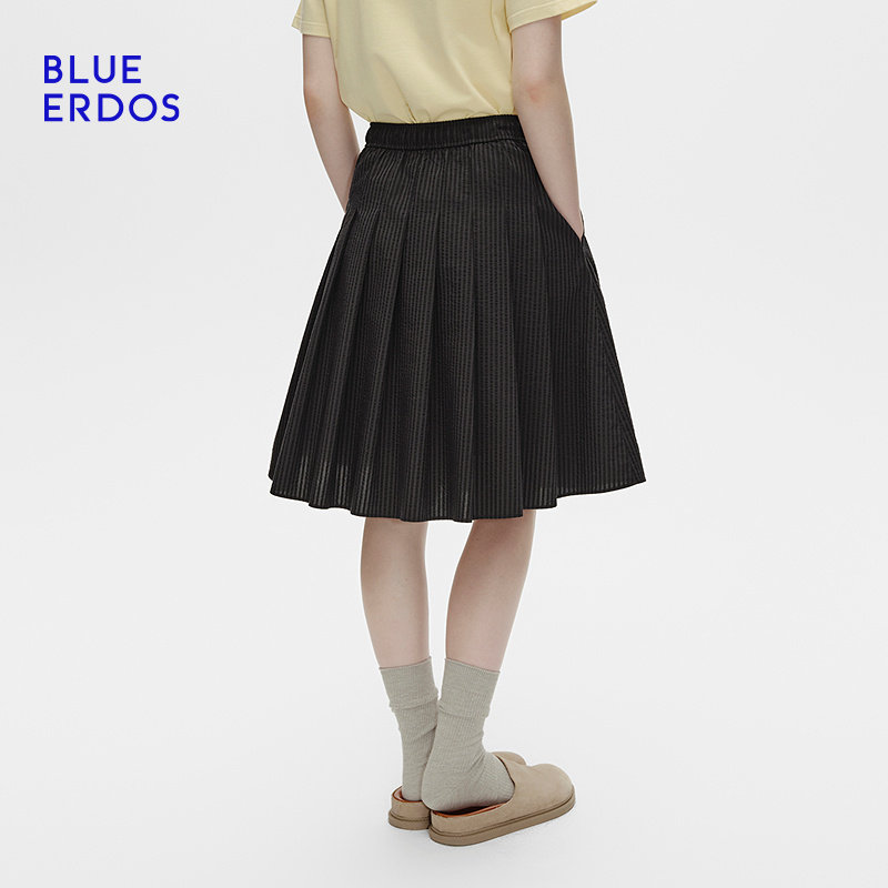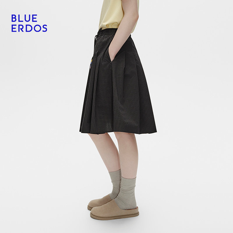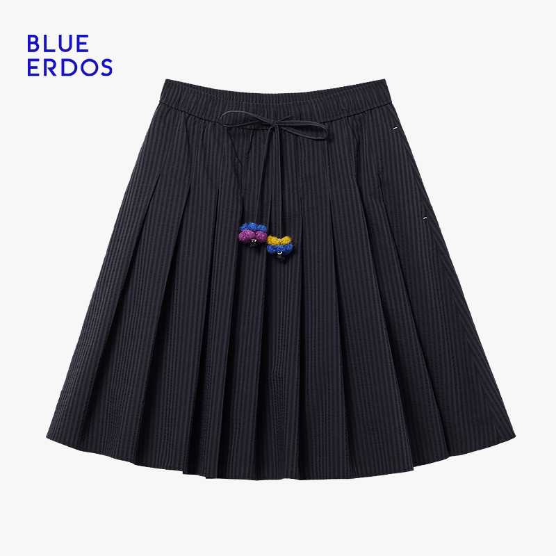 新复古简约可拆卸手钩花设计百褶短裙B256M0035 春季 BLUE ERDOS
