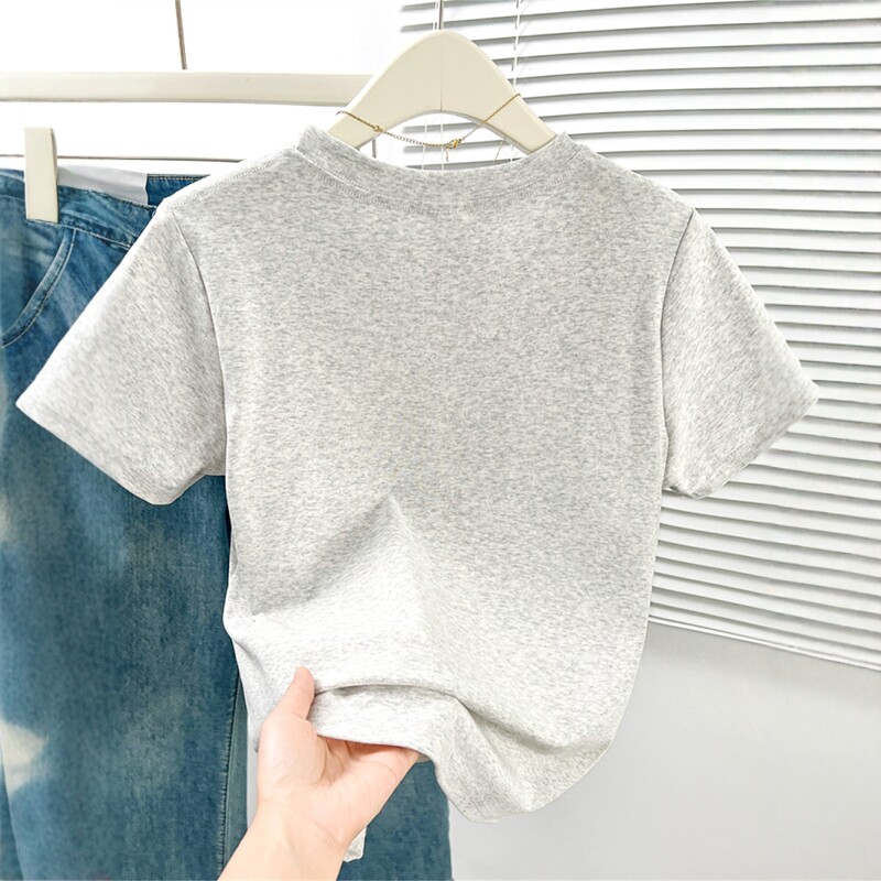 复古潮牌小个子短款 白灰色正肩短袖 美式 2025新款 上衣ins t恤女夏季