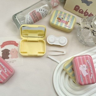隐形眼镜盒简约便携美瞳盒伴侣护理盒少女心ins双联盒近视收纳盒