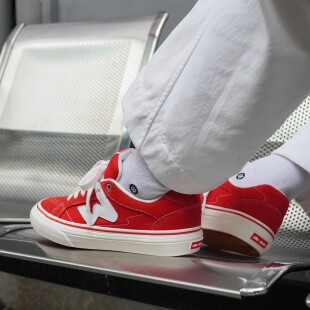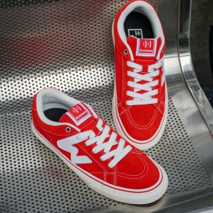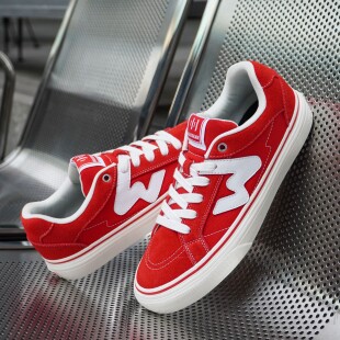 顽刻官方红色春季 校园风W系列翻毛皮帆布拼接男女国潮滑板鞋