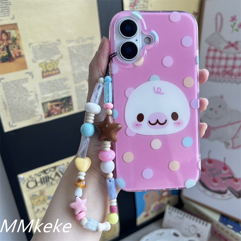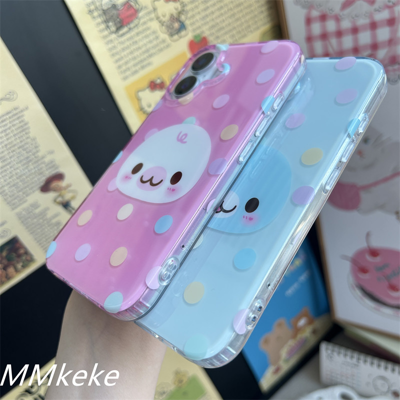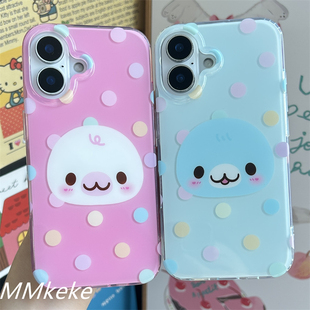 MMKEKE日系萌物ins多巴胺彩色波点豆芝麻小海豹适用苹果17promax双层手机壳iPhone16pm粉蓝情侣保护套1314
