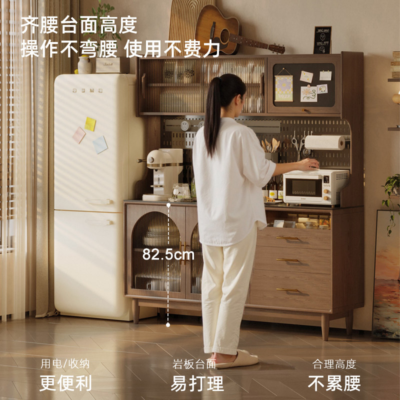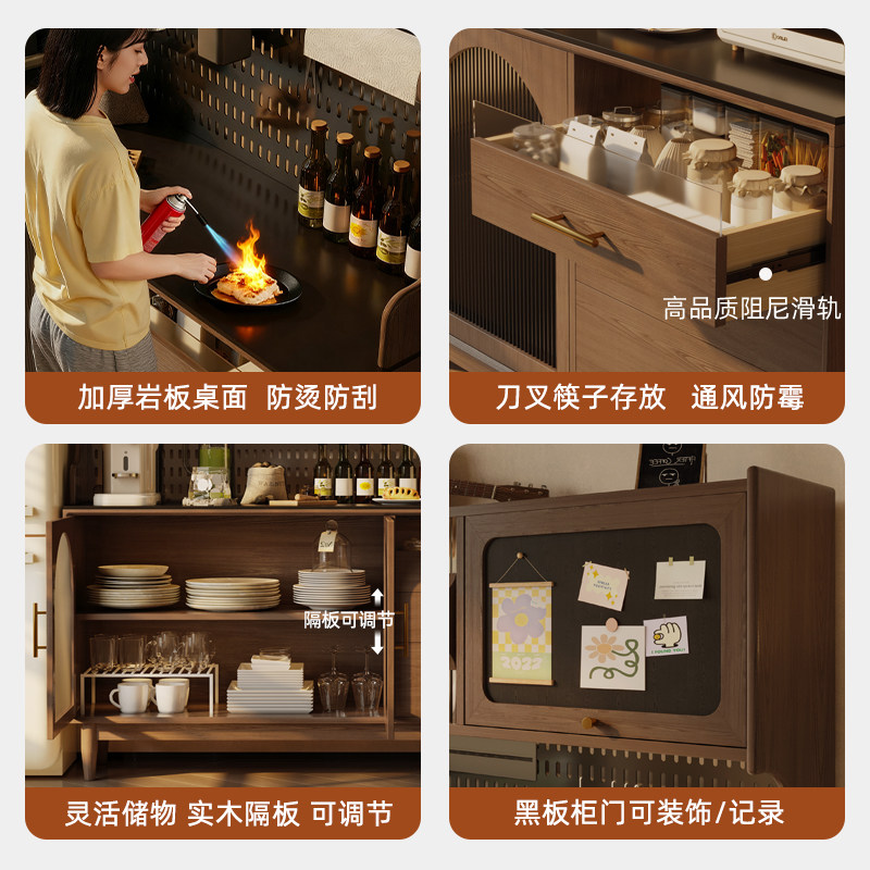 实木餐边柜一体靠墙储物柜岩板家用茶水柜轻奢客厅酒柜收纳柜矮柜