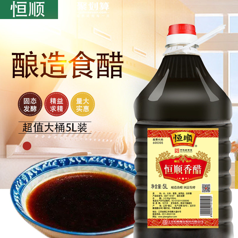 恒顺香醋5L大桶镇江特产香醋纯粮酿造炒菜凉拌蘸饺子食用醋商用
