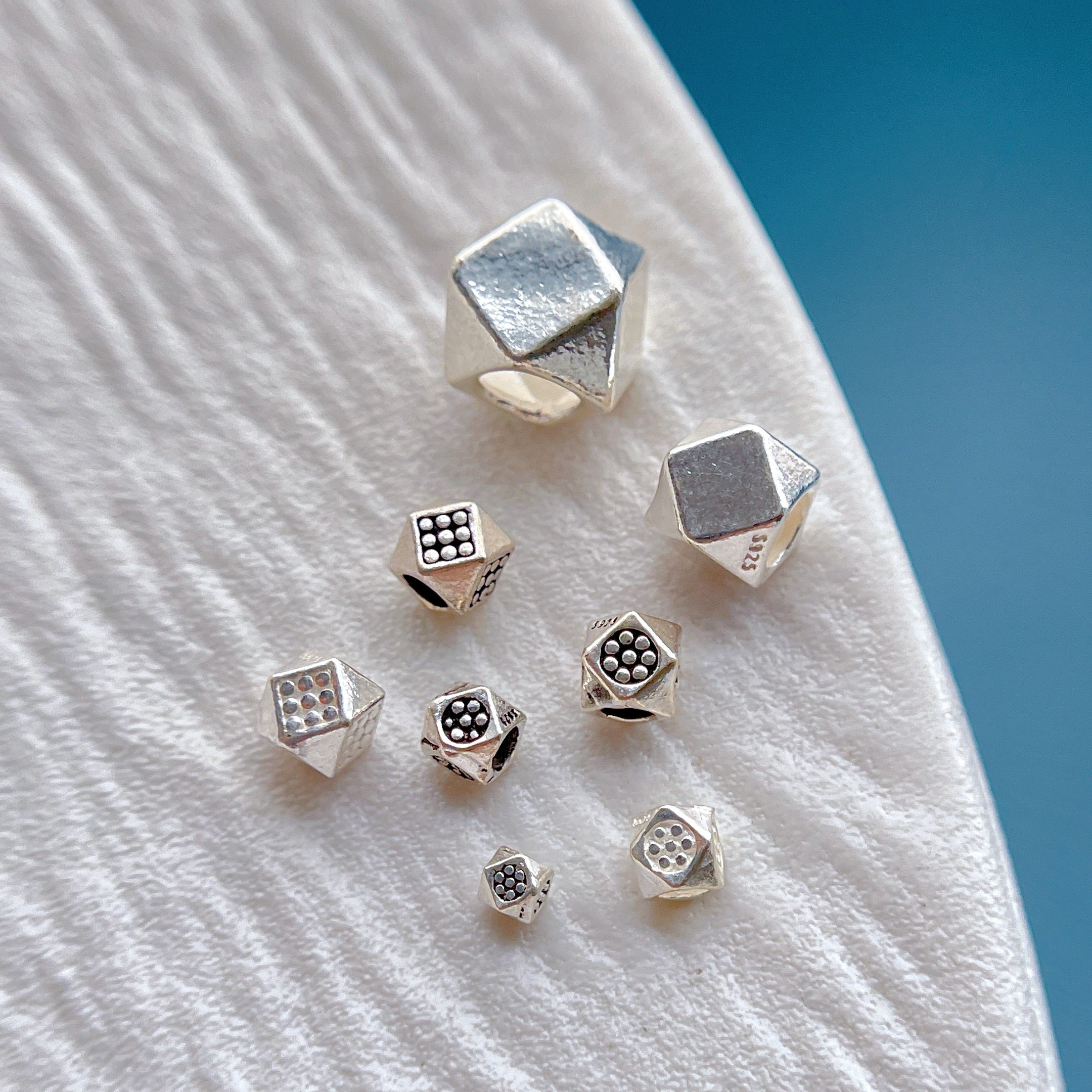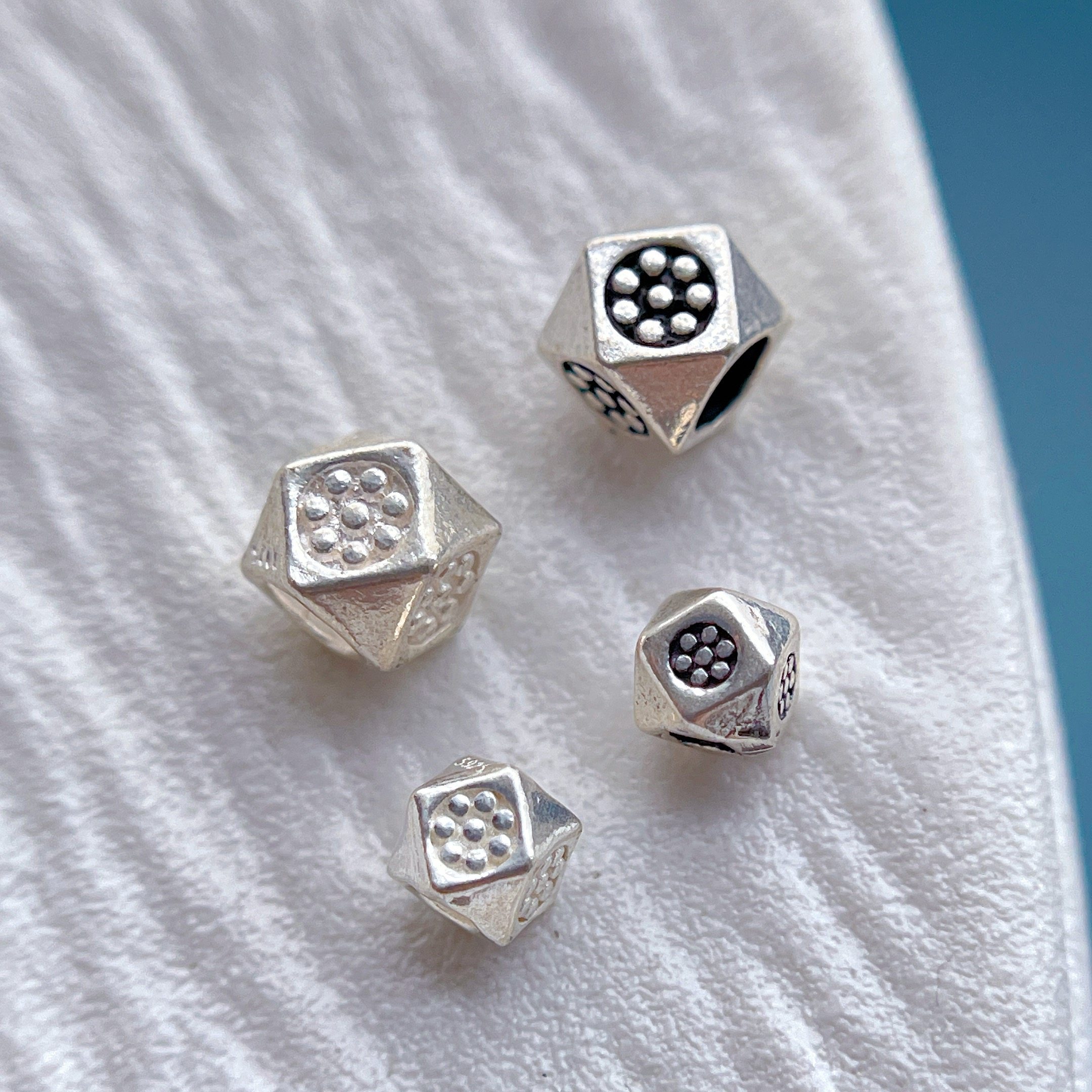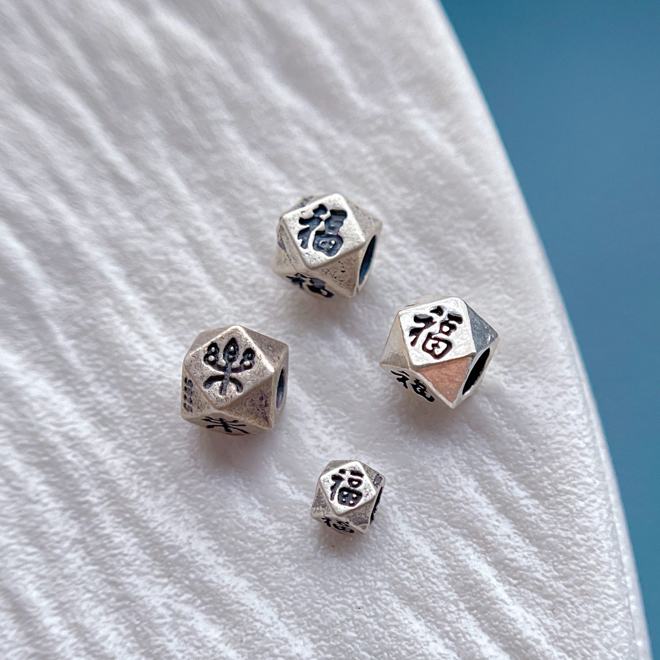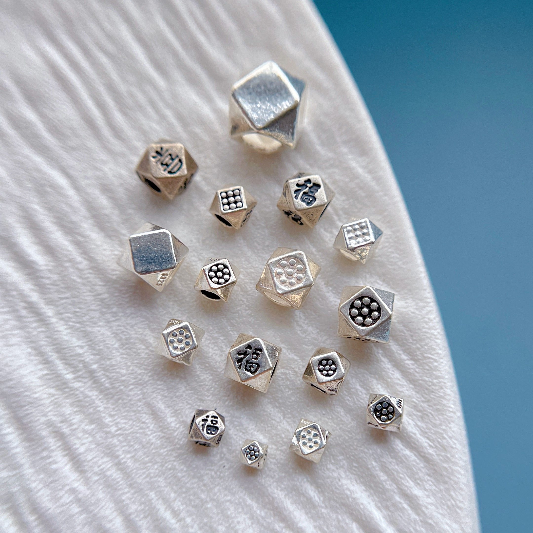 s925纯银饰配件福字平安喜乐八棱珠隔珠方珠diy手串项链饰品配饰